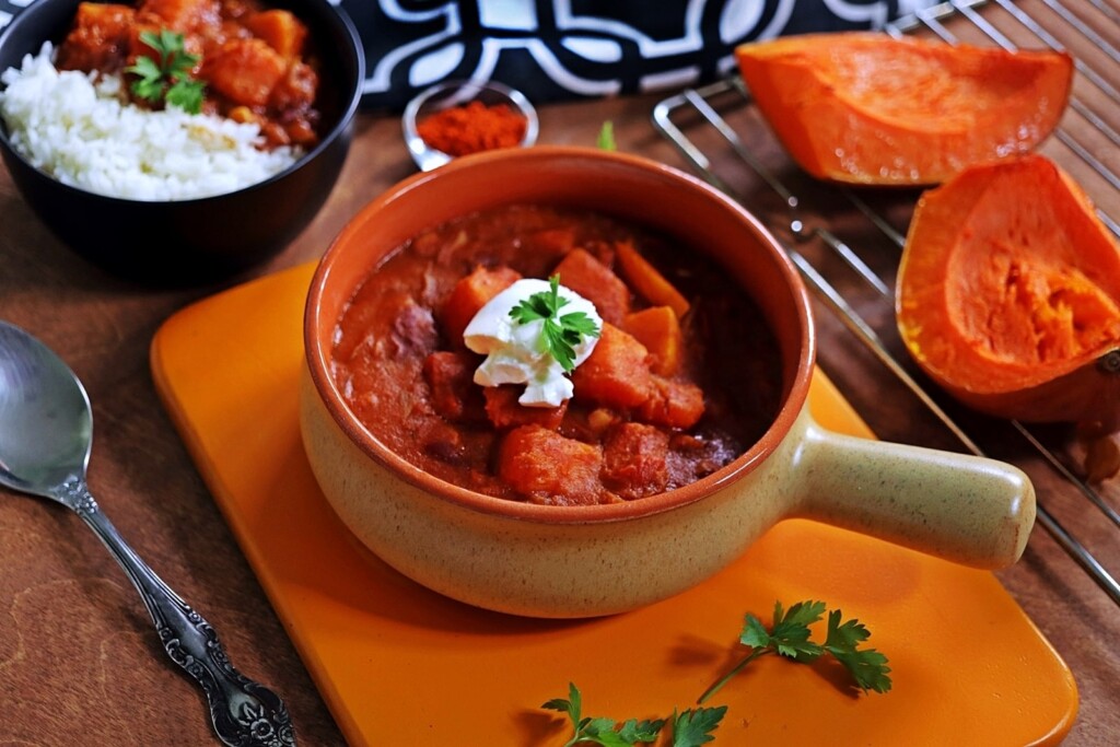 Nenechajte sa zmiasť dlhým zoznamom ingrediencií, nakoľko je tento bezmäsitý vegánsky recept skutočne rýchly a jednoduchý! (OK, s lúpaním tekvice treba začať včas ) Na prípravu chilli fazuliek s tekvicou najprv opražte na kokosovom oleji nakrájanú cibuľu a následne ju dochuťte soľou, a korením. Potom pridajte kúsky tekvice hrubé asi 2 cm. Kým zmäkne, posyte ju koreninami a zalejte zeleninovým vývarom. Dôkladne premiešajte a k pochúťke dusiacej sa na panvici pridajte obsah paradajkovej konzervy. Do krémovej zmesi sa nakoniec pridá chilli sin carne POLCZ a privedie sa do varu. Podávame s čerstvou petržlenovou vňaťou a ryžou!